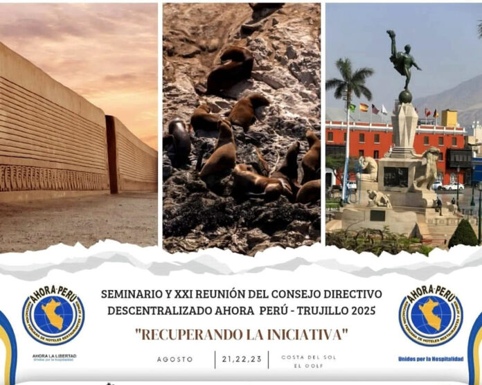 Desde hoy y hasta el sábado 23 de agosto, la ciudad de Trujillo se convierte en el epicentro del turismo nacional con la realización del Seminario “Recuperando la Iniciativa” y la XXI Reunión del Consejo Directivo Descentralizado de la Asociación de Hoteles, Restaurantes y Afines (AHORA Perú).