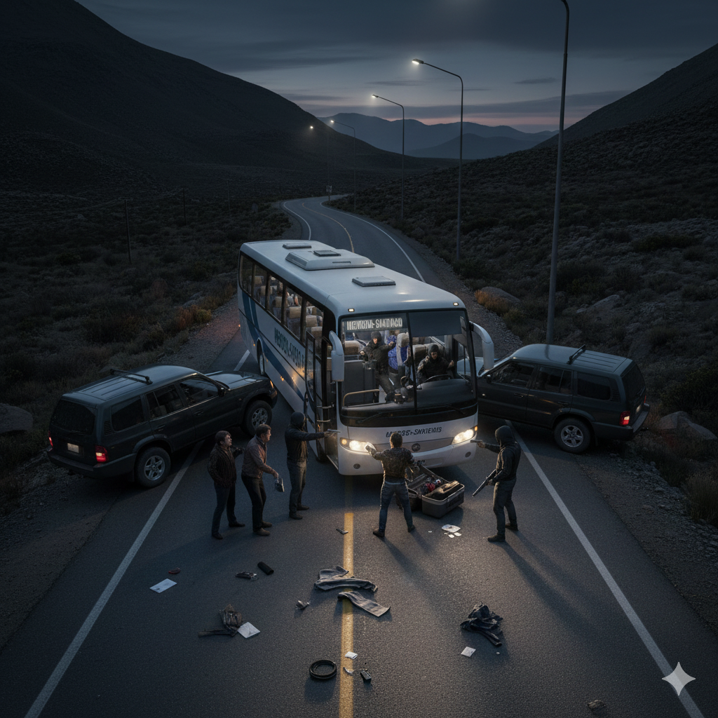 Un contingente de turistas argentinos que viajaba desde Mendoza hacia Santiago de Chile para realizar un tour de compras fue víctima de un violento asalto en plena ruta. El hecho ocurrió durante la madrugada de este jueves, cuando el micro fue emboscado por un grupo armado poco después de cruzar el Paso Los Libertadores, dejando a sus 60 pasajeros completamente desvalijados y en estado de shock.