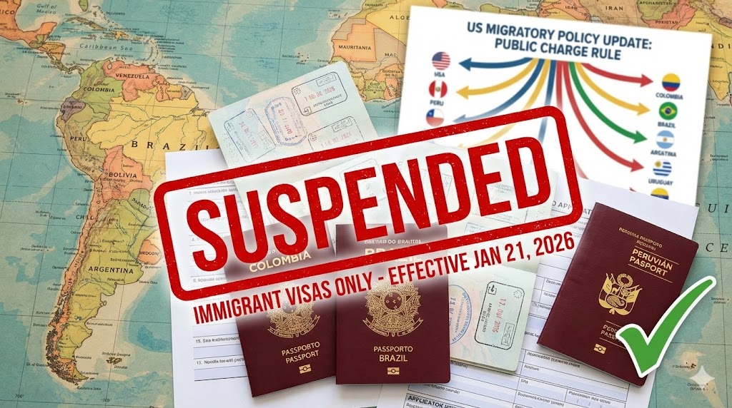 Lima, 14 de enero de 2026. – Un nuevo remezón en la política migratoria de Washington ha encendido las alarmas en Sudamérica. El gobierno de Estados Unidos anunció la suspensión indefinida del procesamiento de visas de inmigrante (residencia permanente) para ciudadanos de 75 países, una lista que incluye sorpresivamente a vecinos regionales como Colombia, Brasil y Uruguay.