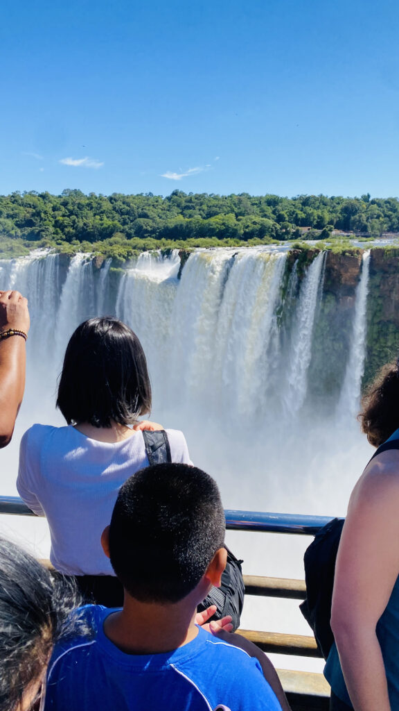 Nuestra primera parada fue el Circuito Superior . Para un peruano que valora las vistas panorámicas de nuestras propias ciudades incas, este recorrido ofrece una perspectiva similar en grandiosidad, pero horizontal. Las pasarelas metálicas se extienden sobre el borde de las cataratas, permitiéndonos literalmente sobre la línea de caída del agua. Desde aquí, la vista es infinita; se observa la cadena de saltos que forman un arco de herradura gigante, recordándonos lo pequeños que somos ante la fuerza de la naturaleza.