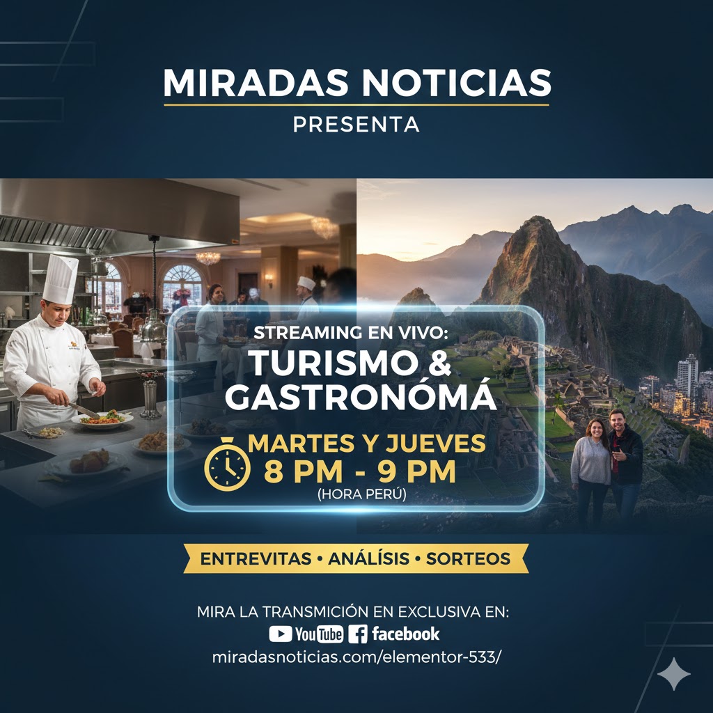 LIMA – En un paso decisivo hacia la modernización de los contenidos periodísticos, Miradas Noticias anunció el lanzamiento oficial de su nueva programación vía streaming . Esta iniciativa busca conectarse en tiempo real con los principales actores del sector turismo y la gastronomía, consolidándose como la ventana informativa referente para el mercado nacional e internacional.