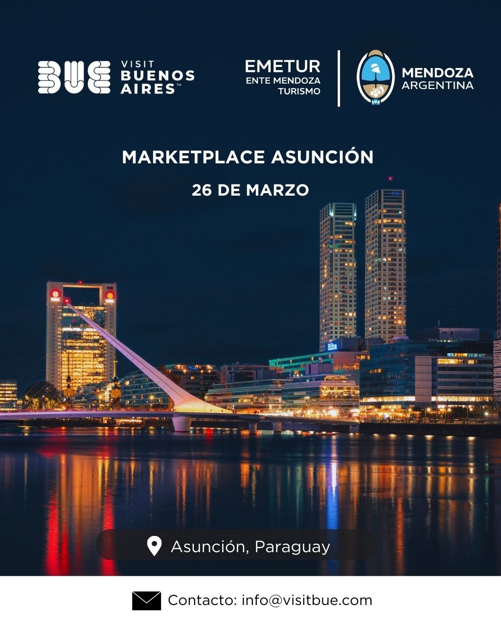 ASUNCIÓN, MARZO 2026 – En un esfuerzo conjunto por consolidar el liderazgo de los destinos argentinos en la región, Visit Buenos Aires y el Ente Mendoza Turismo (EMETUR) aterrizarán en Paraguay el próximo 26 de marzo . Ambas entidades llevarán a cabo un innovador “Marketplace” diseñado para fortalecer los lazos comerciales con el comercio turístico paraguayo.